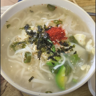 칼국수를 사랑합니다. 국물은 진하고 맛있습니다. 국수는 신선하고 완벽하게 익었습니다.