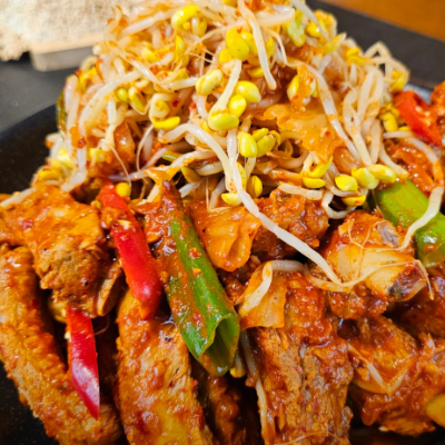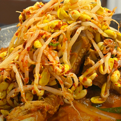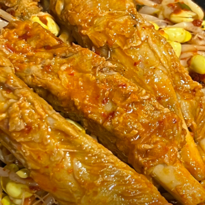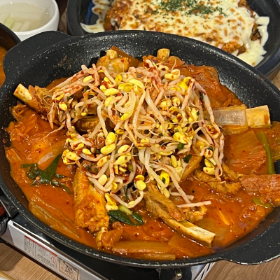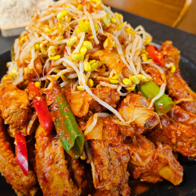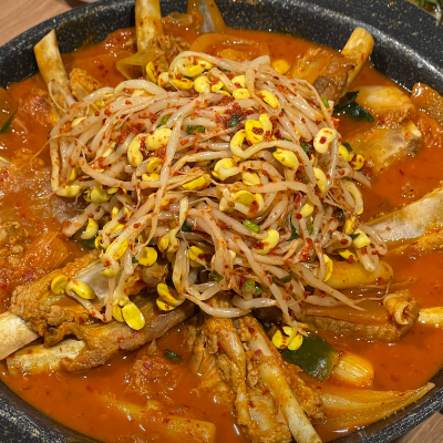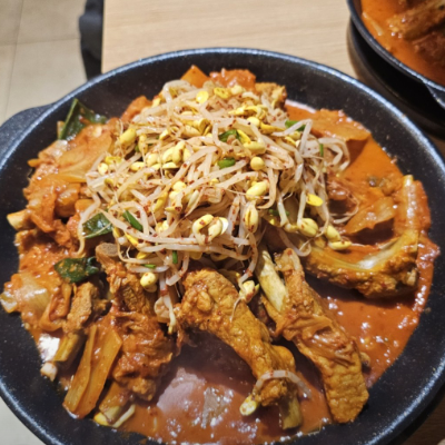 등갈비에 묵은지김치 콩나물 들어가서 맛있어요. 국물이 어느정도 있는데 밥에 비벼먹기 좋아요. 등갈비 부드럽고 양념맛이 끝내줘요.