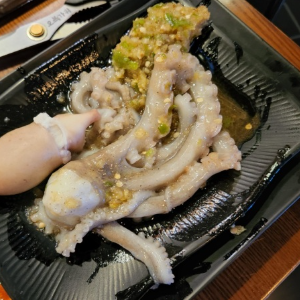 산낙지를 숯불에 구우니 맛있네요.
