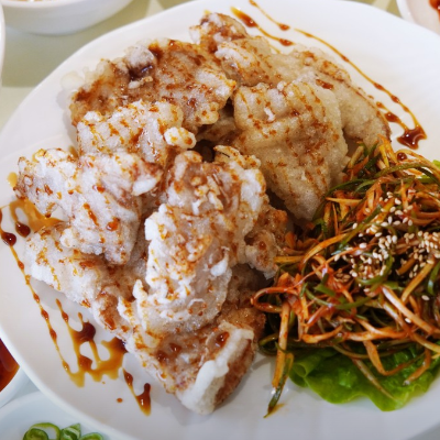 매장도 넓고 주차하기 좋아요. 음식도 다 맛났어요. 특히 비빔은 맵지도 않고 깔끔했고 육튀김도 맛났어요.