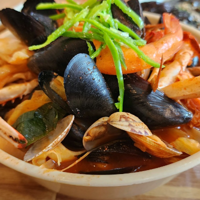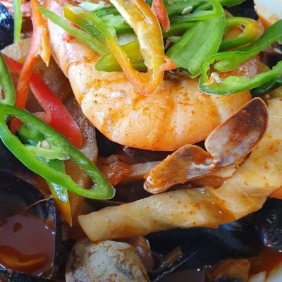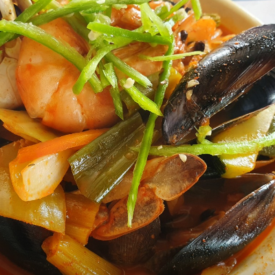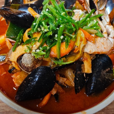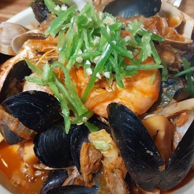 군산지역은 타지역과 차별된 점은 푸짐한 해산물이라는 점이에요. 국물 맛은 다소 약하지만 매콤해서 시원해요.