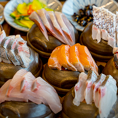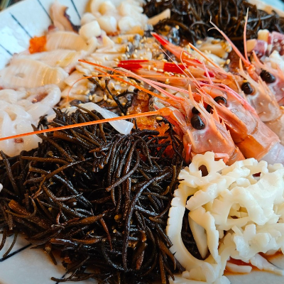 에메랄드빛 파도가 넘실대는 함덕해변뷰를 바라보며 신선한 딱새우와 고등어회를 풍성하게 맛 볼 수 있는 횟집입니다.