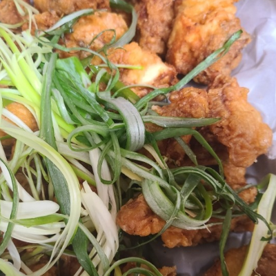 큰애가 제일 좋아하는 치킨이에요. 맛있어요. 옛날통닭 맛입니다. 파닭의 원조라는데 파랑 같이 먹는 치킨맛은 일품이에요.