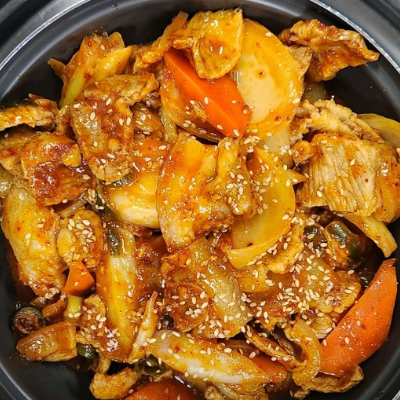 촉촉하게 익은 닭고기와 매운 양념의 조화가 일품인 족도리탕이었습니다.
