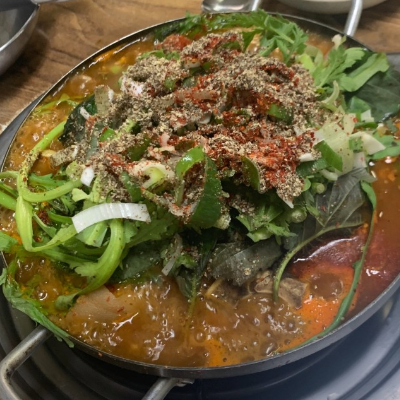 된장찌개 한 그릇에 행복을 느꼈습니다. 진한 된장 맛이 일품이었습니다.