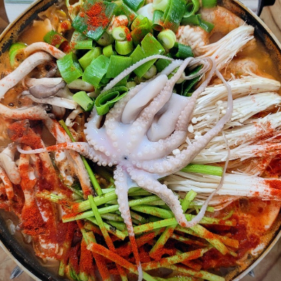 해산물이 골고루( 고니 알 새우 게 미더덕 홍합살 조개 ) 등등 들어있어 국물이 시원하네요.