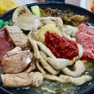 국제시장의 대표 전골메뉴.담백하고 얼큰한 국물과 부드러운곱창이 듬뿍 당면사리는 기본 제공되며 우동사리는 별도 입니다.