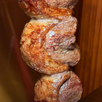 엄청 큰 슈하스코 꼬치를 들고 다니시는데 고기를 썰어주시면 집게로 잡는 재미가 있어요.