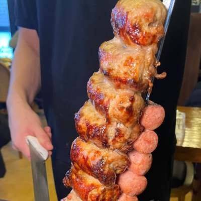 엄청 큰 슈하스코 꼬치를 들고 다니시는데 고기를 썰어주시면 집게로 잡는 재미가 있어요.