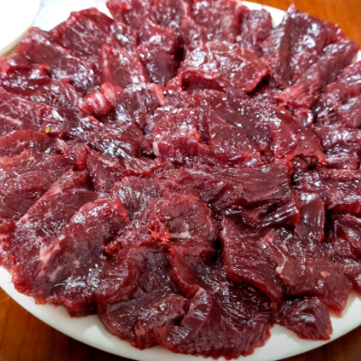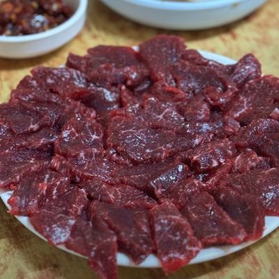 생고기에 힘줄이 전혀없어서 씹는데 질긴감은 느낄 수 없고, 혀에 촥 달라붙는 식감 너무 좋네요.