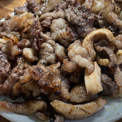 의외로 생고기보다 오드래기가 더 맛있었습니다. 생고기도 쫄깃하고 괜찮았지만 오드래기에 입혀진 불향과 오독오독한 식감이 좋았어요.