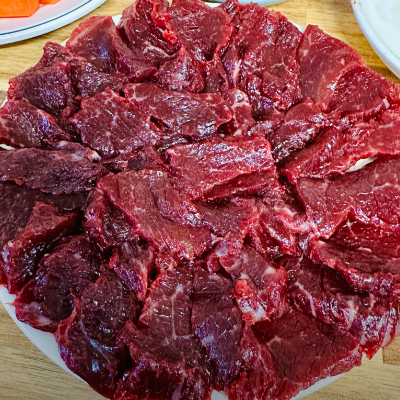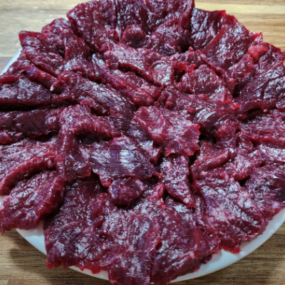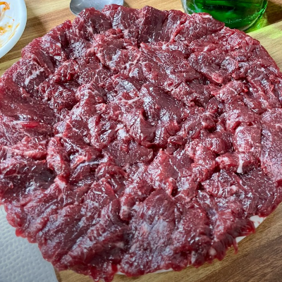 생고기에 힘줄이 전혀없어서 씹는데 질긴감은 느낄 수 없고, 혀에 촥 달라붙는 식감 너무 좋네요.