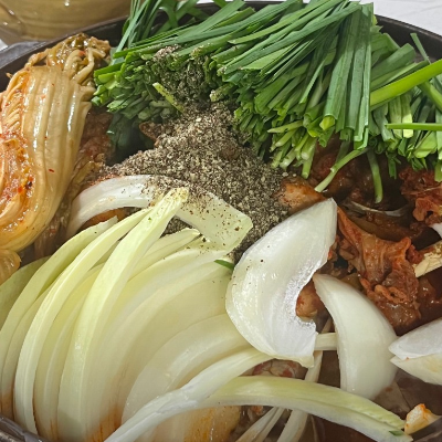 닭고기는 부드럽고 촉촉했으며, 묵은지의 감칠맛이 요리의 맛을 한층 끌어올렸습니다.