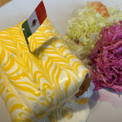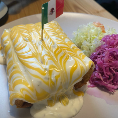 치미창가, 엔칠라다는 소스랑 같이 먹어야 더 맛있고 특히 사이드에 샐러드가 나와서 좋아요.