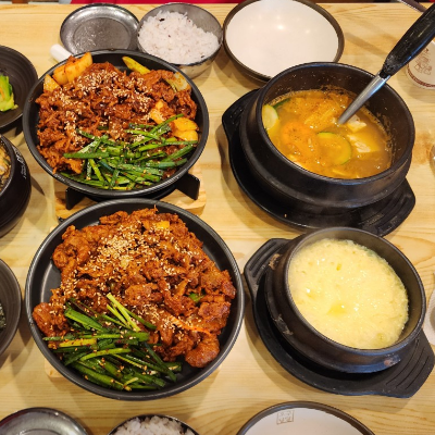 우렁쌈장이 순한맛에 견과류 듬뿍이라 맛있었고 된장도 깔끔칼칼했고 제육은 맵싹하니 맛있었어요.