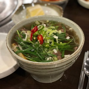 최상급 아롱사태가 우주최고로 들어가 있으며 직접 맷돌로 갈아낸 녹두전이 들어간 평양전통국밥