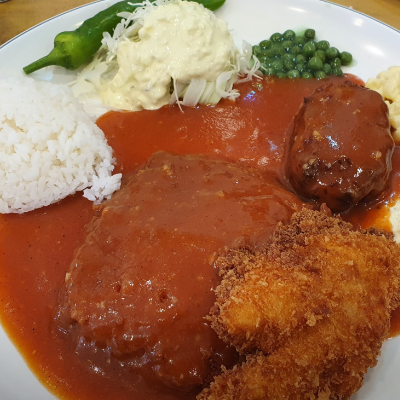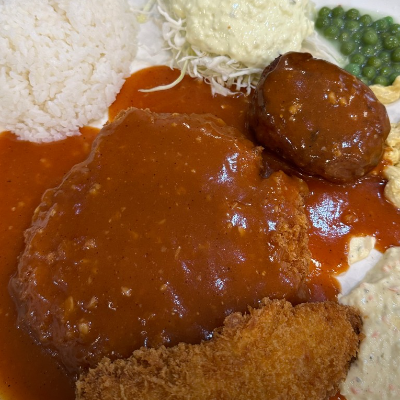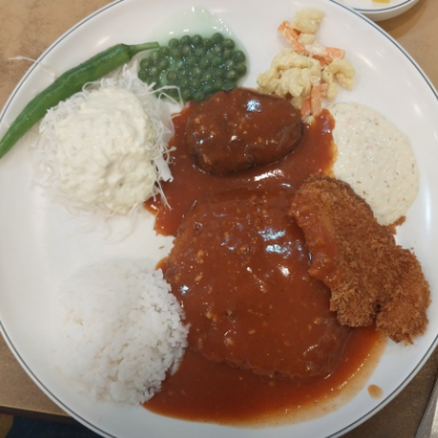 생선까스도 부드럽고 함박스테이크도 고기가 푸짐하고 육즙도 살아있어요.