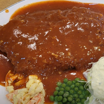 은평구 주민이라면 모두가 아는 경양식 돈까스집입니다. 돈까스 소스는 새콤달콤하다기 보다는 집에서 뭉근하게 끓여낸 소스예요.
