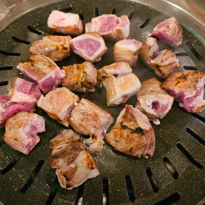 참나무에 초벌구이 해서 나와서 먹는 동안 굽는 냄새나 연기가 덜 해서도 좋았어요.
