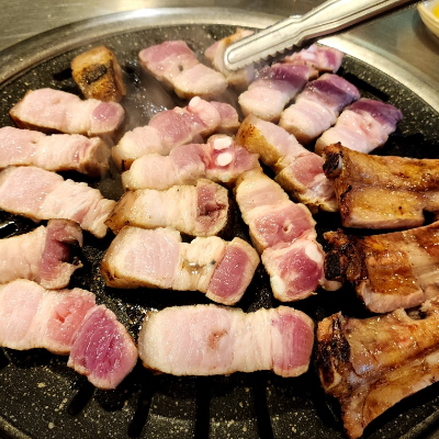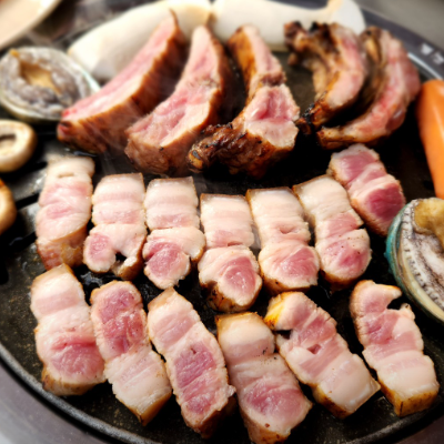 삼겹살이랑 장어 먹었는데 삼겹살은 손에 꼽을만큼 맛있었어요.