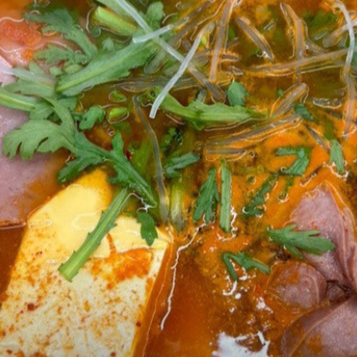 다른 부대찌개 집과 달리 미나리가 올라가는게 특징입니다. 햄은 일반적인 햄을 쓰는 것 같아요.
