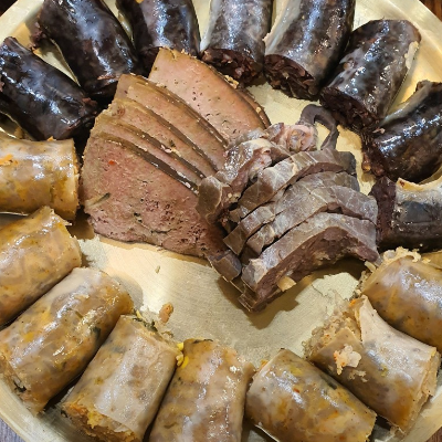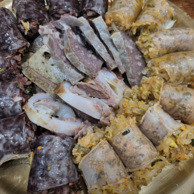 수제모듬순대 반접시 포장했어요. 고소하고 맛있는 냄새가 나요. 기대 이상으로 진짜 맛있었어요.