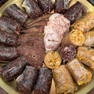 수제모듬순대 반접시 포장했어요. 고소하고 맛있는 냄새가 나요. 기대 이상으로 진짜 맛있었어요.