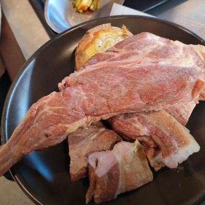 흑돼지를 숙성해서 부드럽고 맛있는편이예요. 모둠을 시켰는데 고기 부위별로 맛의 퀄리티가 다른 느낌을 받았어요.