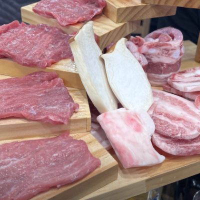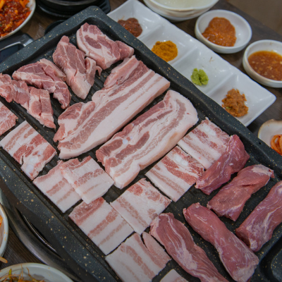 생삼겹살 목살 고기가 맛있어요. 여러가지 소스에 찍어 먹으니 더 맛있는거 같아요.