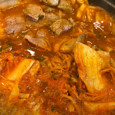 김치찌개처럼 국물이 있어서 라면사리 넣어 먹기 좋고 고기랑 김치 양도 푸짐해서 든든히 먹고 갑니다.