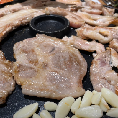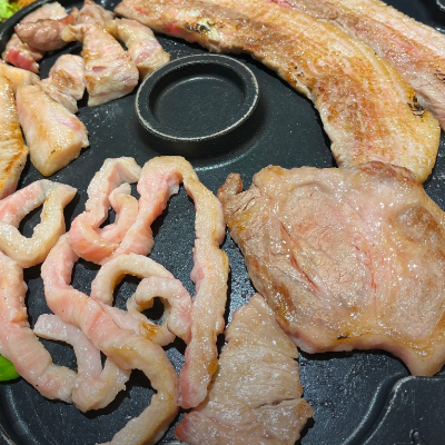 삼겹살이 진짜 맛있어요. 칼집이 엄청 들어가서 구웠더니 완전 겉바속촉입니다.