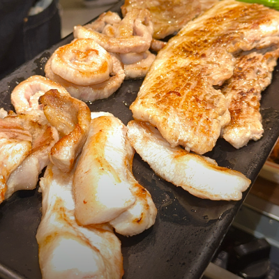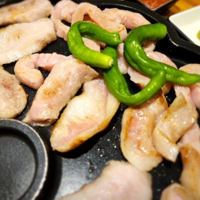삼겹살이 진짜 맛있어요. 칼집이 엄청 들어가서 구웠더니 완전 겉바속촉입니다.