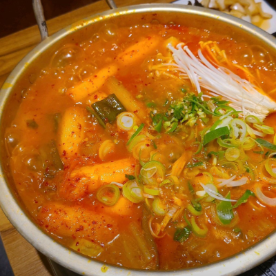 꽃삼뚜껑에서 제조한 올리브소스도 고기와 함께 먹으면 너무 맛있고 부대전골의 김치시원함맛과 듬뿍들어있는 소세지햄에 감동했어요.