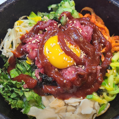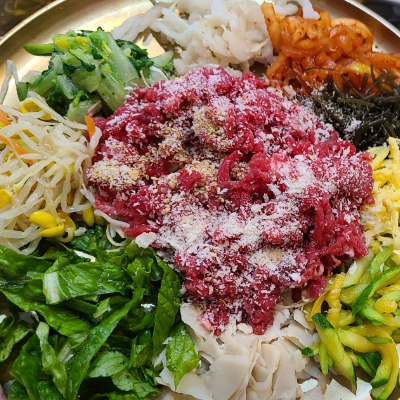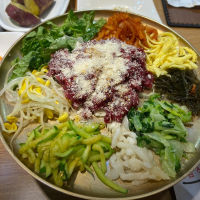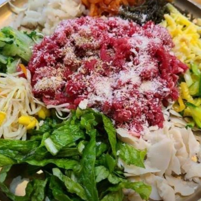 야채도 듬뿍 넣어주시고,육회도 신선해요. 육회가 입에서 살살 녹고, 야채랑 먹으니 더 맛나요.