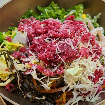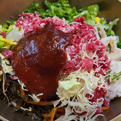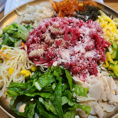 야채도 듬뿍 넣어주시고,육회도 신선해요. 육회가 입에서 살살 녹고, 야채랑 먹으니 더 맛나요.
