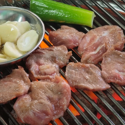 돼지 뽈살 숯불에 구워먹는 건 처음인데 단 한 번도 느껴 보지 못한 쫄깃 하면서 부드러운 식감도 좋아요.