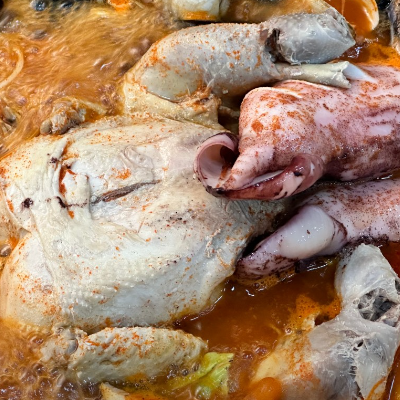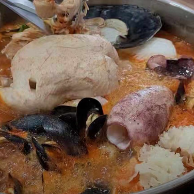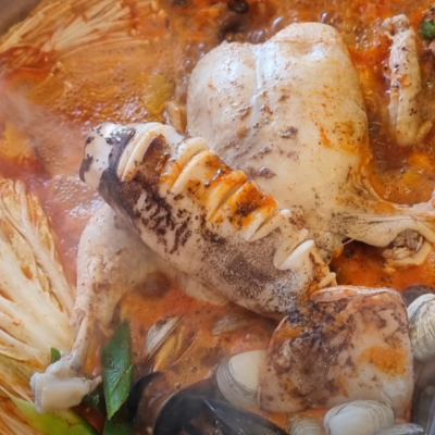 냄비에 커다란닭이 한마리 딱 있어서 너무 놀랬습니다. 안에 들어가는 해산물도 너무 많았고 해산물러버로써 너무 행복한 저녁식사였습니다.