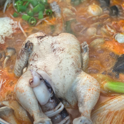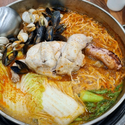 커다란 닭 한마리와 해물들이 푸짐하게 들어가서 국물맛도 찐하고 시원합니다.