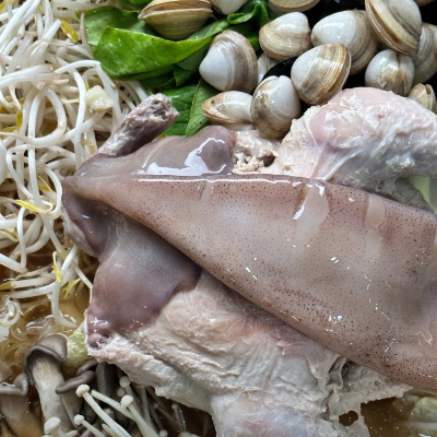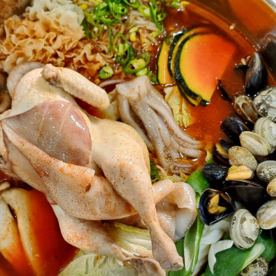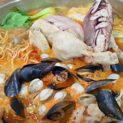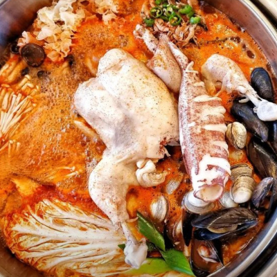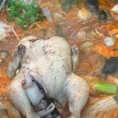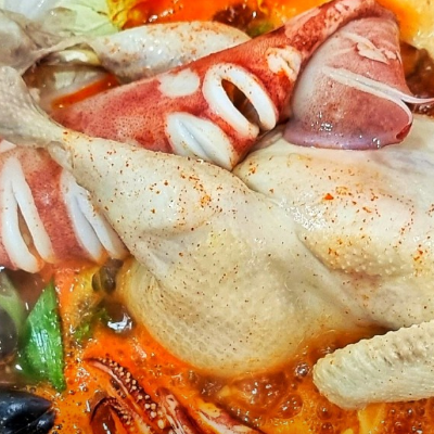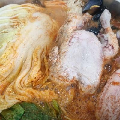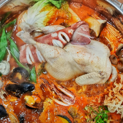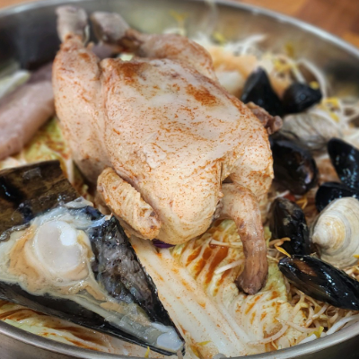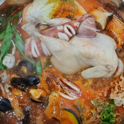 커다란 닭 한마리와 해물들이 푸짐하게 들어가서 국물맛도 찐하고 시원합니다.