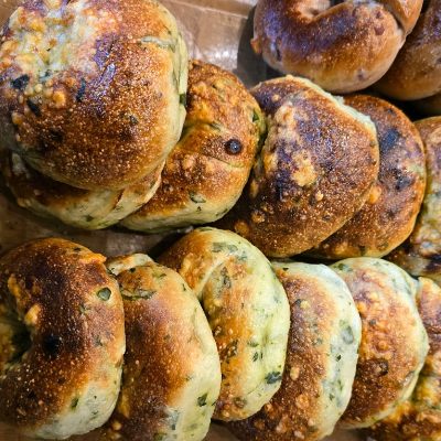 베이컨레드페퍼, 올리브치즈, 크림치즈베이글 샀구 제가 갔을땐 시금치베이글이랑 버터솔트는 아쉽게 없었던거 같아요.