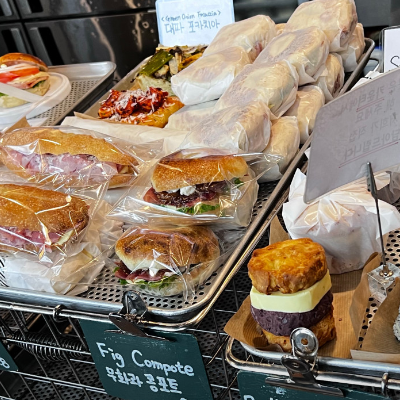 코끼리 베이글 오전 10시 반 즈음에 오니 원하는 맛들이 다 있었어요. 갓 나온 바질 베이글은 환상적이었습니다.