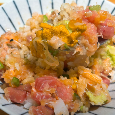 인상 깊었던건 미쁘동인데 비주얼은 솔직히 음식물 덩어리 같이 생겼지만 맛은 여러 종류의 회들이 작게씩 모여서 다양한 맛을 한꺼번에 느낄 수 있어요.