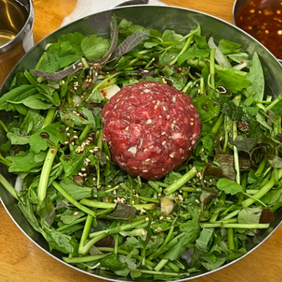 진짜 너무너무 맛있었구 육회비빔밥 아주 좋았어요. 칼국수사리 넣고 고기도 다시 추가해서 먹는데 진한 육수가 술을 계속 들어가게 했습니댜.