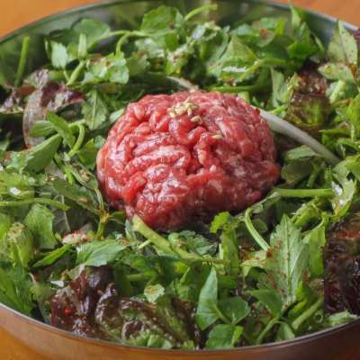 육회는 말해뭐해 입니다. 미나리랑 감태랑 싸서 먹으니깐 색다르니 맛있습니다.