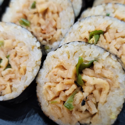 톳김밥도 부드럽고 쫄깃한밥알에 톳의 식감이 느껴져요. 톳의 향이 많이 강하지 않아서 어른,어린이 모두 먹을수있을거 같아요.