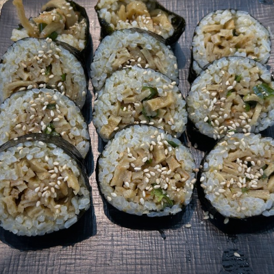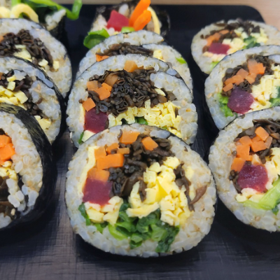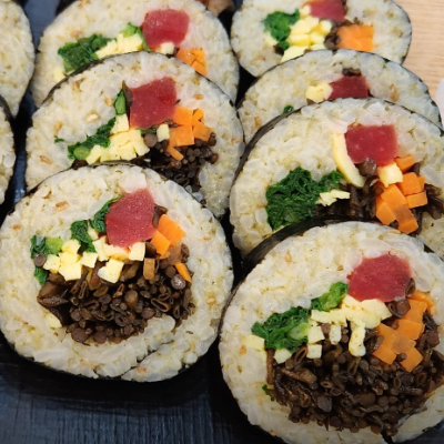 톳김밥도 부드럽고 쫄깃한밥알에 톳의 식감이 느껴져요. 톳의 향이 많이 강하지 않아서 어른,어린이 모두 먹을수있을거 같아요.