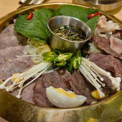 4인 방문하여 어복쟁반 소, 곰탕, 냉면, 감자채 주문했습니다. 음식도 엄청 빨리 나오고 양이 많아서 정말 만족스러운 식사였습니다.