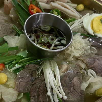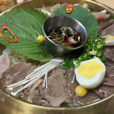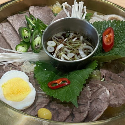 4인 방문하여 어복쟁반 소, 곰탕, 냉면, 감자채 주문했습니다. 음식도 엄청 빨리 나오고 양이 많아서 정말 만족스러운 식사였습니다.