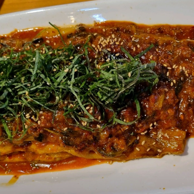 양념이 된장인줄 알았는데 된장이 아닌 강황이 들어간거라 하네요. 파전 맛있어요.
