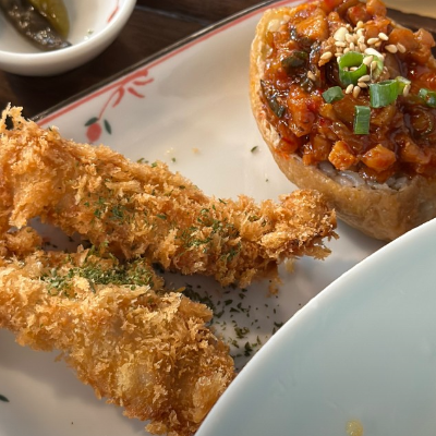찌쿠타마부카게 정식에 사이드로 주문한 갈치유부초밥이랑 새우깡! 너무 맛있어요.